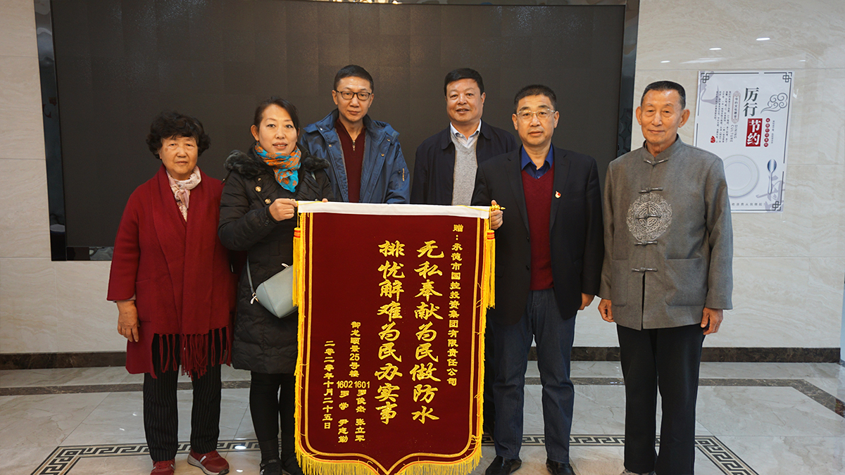 10月28日上午,市區(qū)御龍頤景小區(qū)的四位居民將一面繡有“無私奉獻為民做防水,排憂解難為民辦實事”的錦旗送到集團公司,表達了對集團公司出資解決御龍御景小區(qū)房屋漏水問題的感謝之情。