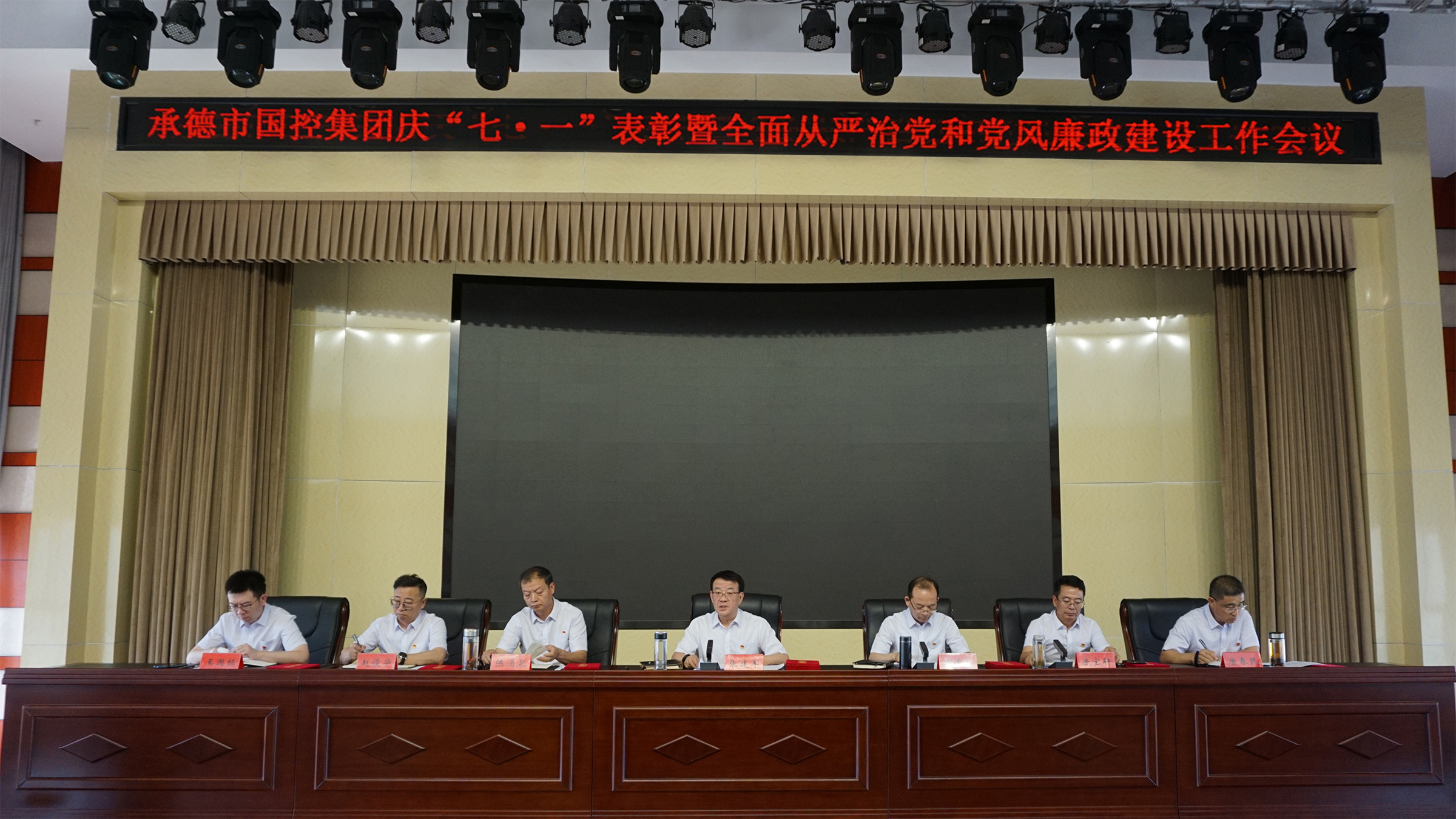 6月30日,國控集團組織召開慶“七一”表彰暨全面從嚴治黨和黨風廉政建設(shè)工作會議。集團公司黨委書記、董事長張建軍主持會議,領(lǐng)導班子全體成員、集團公司本部全體職工、子公司中層以上人員及黨員參加會議。
