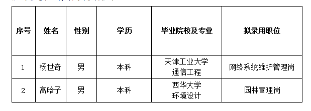 承德市國瑞置業(yè)有限公司關(guān)于擬錄用人員的公示